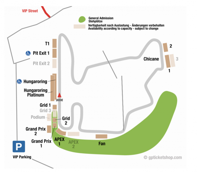 Premium parking je placené parkoviště pro osobní automobily na okruhu Hungaroring, které se nachází nedaleko hlavní sekce tribun. Parkovací lístek platí pro Premium parking a pro použití VIP cesty k okruhu. Parking může zákazník objednat k jakékoli vstupence na GP Maďarska. Orientační umístění parkoviště naleznete na mapce.